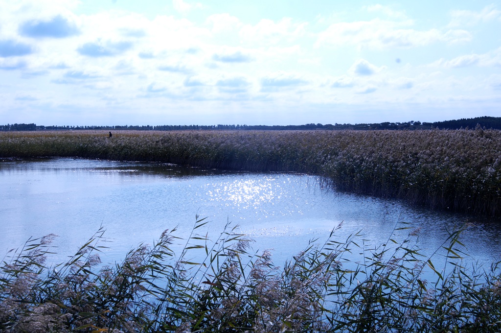 苇花在风中摇曳,秋日的天空空旷而高远,大自然赐予向海一个绝美的金秋。