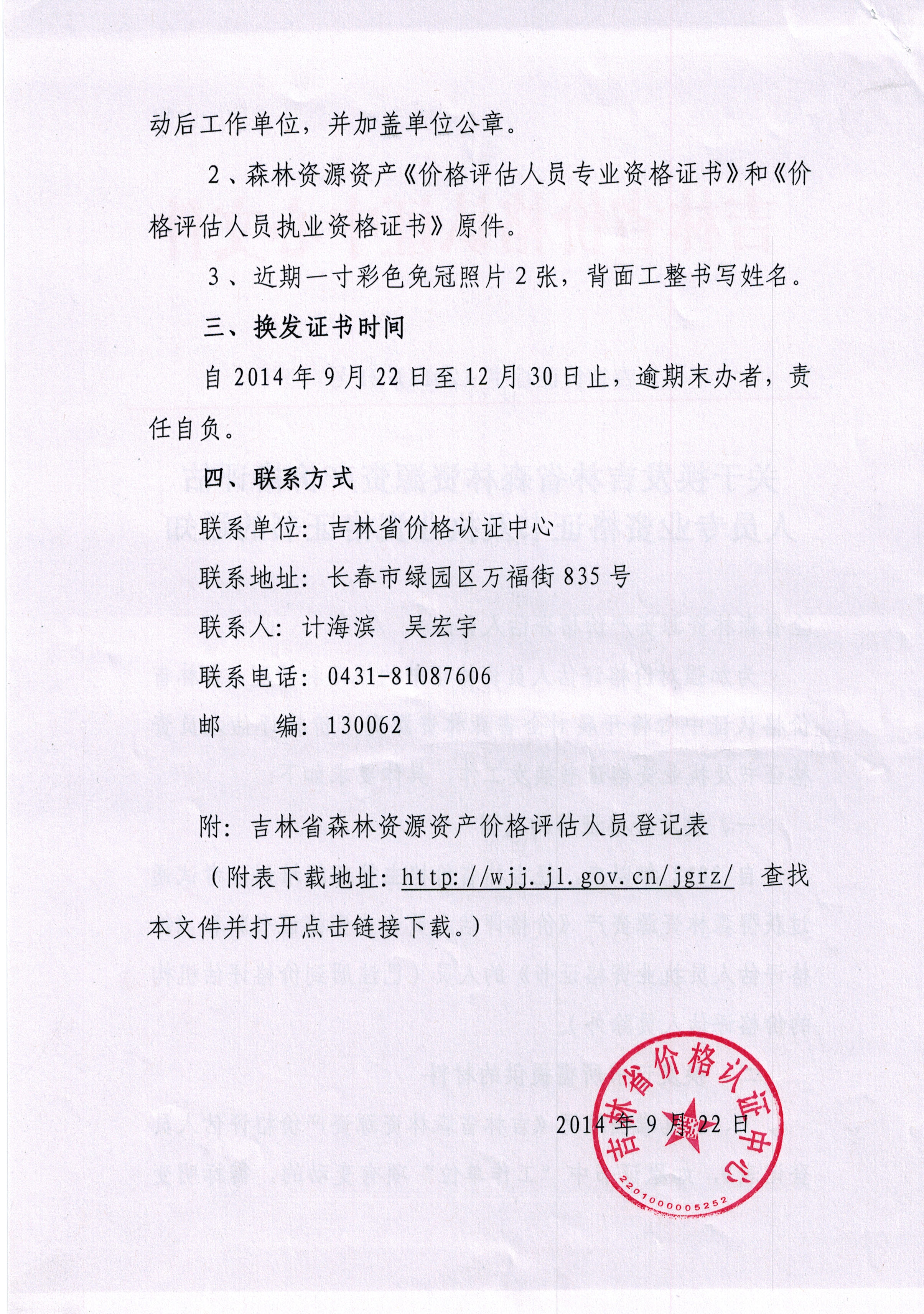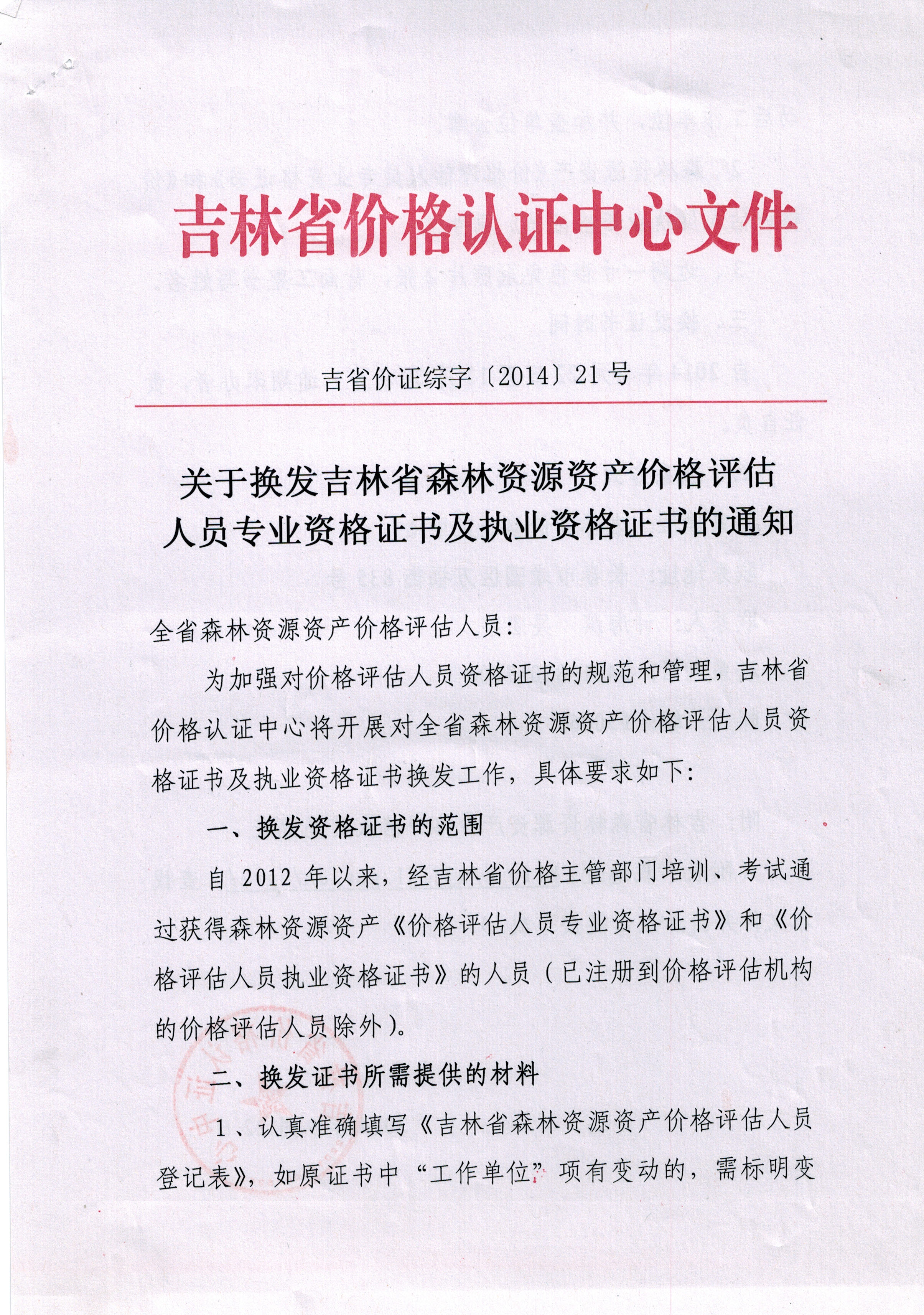 省价格认证中心关于换发森林资源资产价格评估执业证书的通知